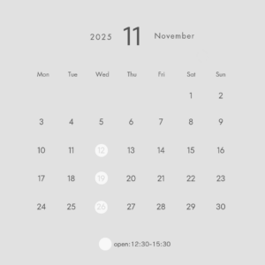 オープン日以外にご来店をご希望のお客さまはメールにてご予約ください
